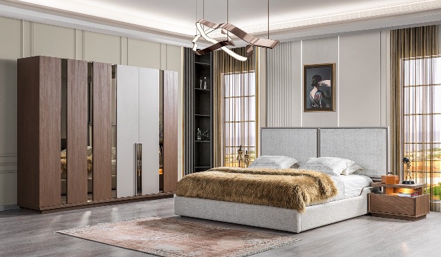 Современная мебель для спальни Сидней сделана из МДФ высокого качества в комбинации двух цветов – белый и орех. Сочетание этих цветов дает возможность установить такой спальный гарнитур в любом цветовом интерьере. Спальня выполнена в стиле модерн в прямых формах. Двухспальная кровать может быть в двух размерах спального места- 1600*2000 и 1800*2000 и оснащена подъемным механизмом. Большой шкаф полностью оснащен всеми системами для хранения – ящики, полки, штанги для тремпелей.
