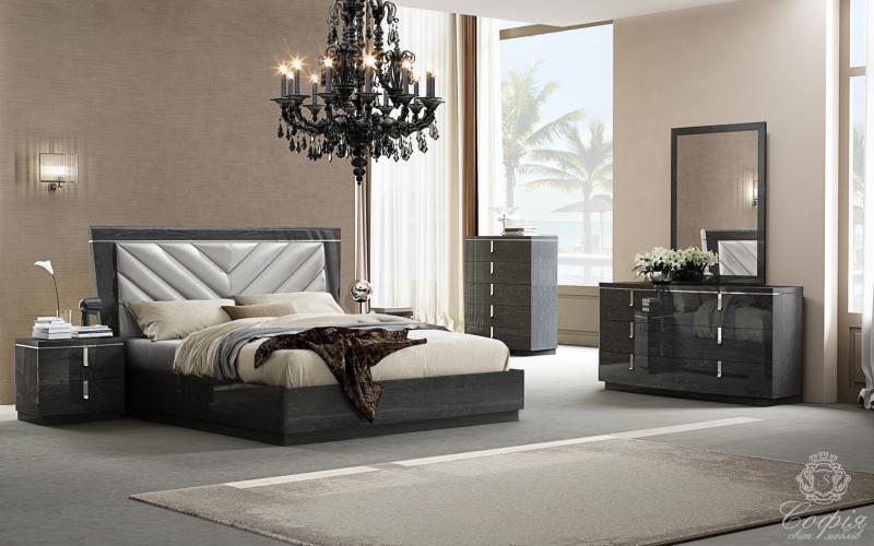 Спальня Аликанте (Alicante) выполнена в стиле модерн. Кровать оснащена удобным подъемным механизмом, который обеспечивает доступ до внутреннего короба для хранения постельных принадлежностей и других предметов домашнего обихода.
