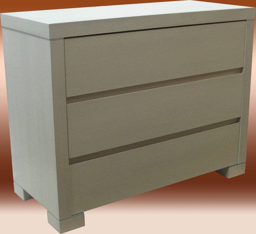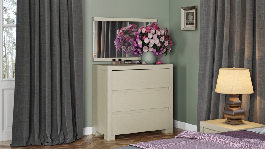 Комод Амина 38 Night беленый дуб может иметь на выбор три широких (928 мм) или четыре узких (653 мм) выдвижных ящика. Все фасады ящиков одинаковой высоты.