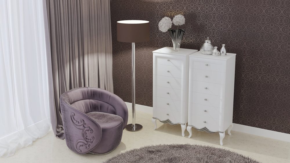 Комод Буккет Вінтаж виконується в двох варіантах – на чотири і на шість висувних ящиків. Широкий комод на 4 ящики забезпечений ручками-дужками, високий комод на 6 ящиків – ручками точкового типу.