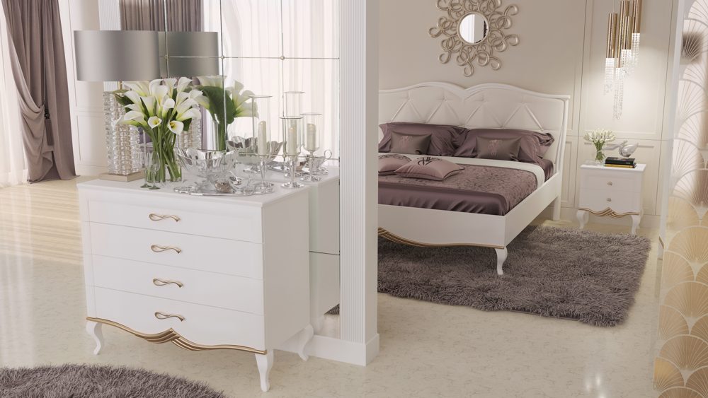 Также предлагаем другие классические спальни из натурального дерева, выполненные в белом цвете: Ривьера, Клеопатра, Каприс.