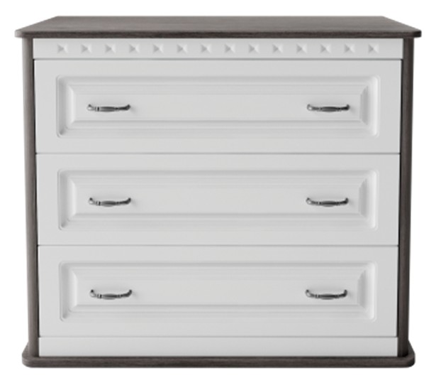 Вместительные комоды с тремя выдвижными ящиками вместят в себя все мелочи, необходимые в вашей спальне. Телескопические направляющие.