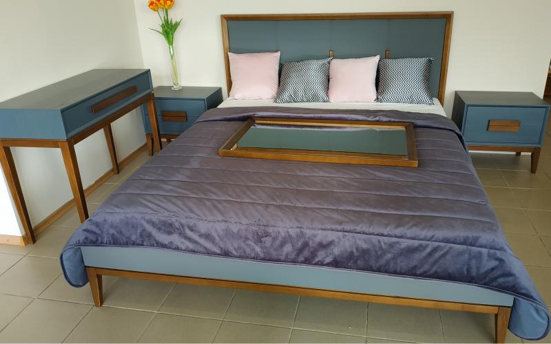 Спальня Мокко выполнена в стиле модерн.
