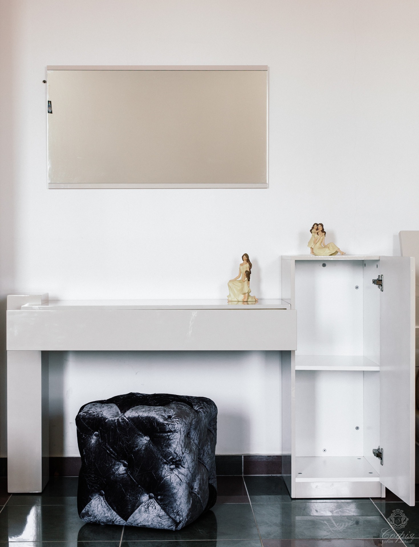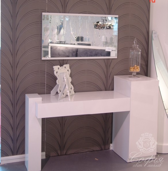Туалетный столик с зеркалом Шоколад (1415*408*900 мм) в стиле модерн добавит света в интерьере, а необычный дизайн – современности. Не прикреплённое к столику прямоугольное зеркало позволит повесить его на любой высоте, благодаря чему вы сможете полюбоваться собой во всей красе. Выдвигающийся из столика ящик и прилегающая тумба вместят множество необходимых мелочей или же средств по уходу.