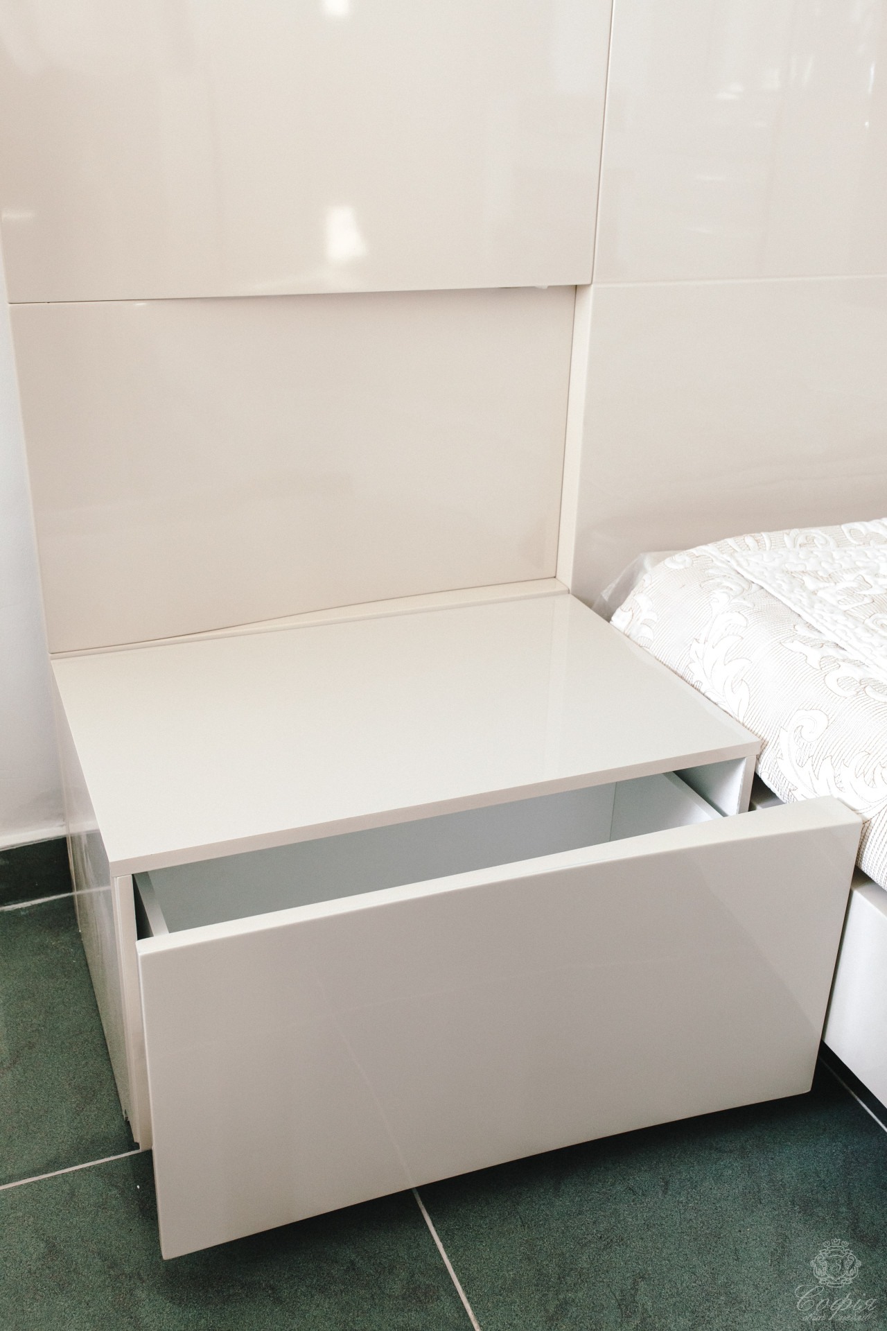 Спальня Шоколад от Мир Мебели София изготовлена из экологически чистого МДФ и покрыта устойчивой глянцевой краской цвета айвори. Цвет, напоминающий цвет белого шоколада, наполнит вашу спальню романтическим настроением.