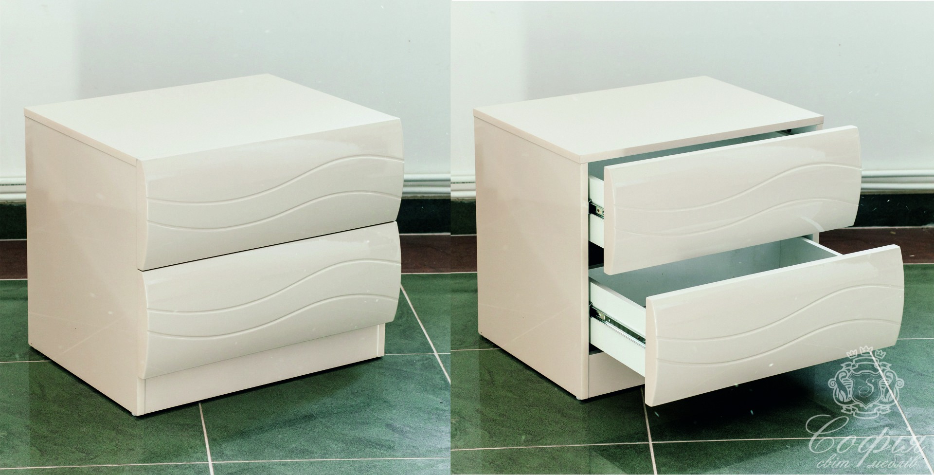 Прикроватная тумба Тиффани (530*450*420 мм) в стиле модерн является идеальным дополнением кровати Тифани. Тумба оснащена механизмом TIP-ON, что делает её современной и легкой в эксплуатации современности. Механизм TIP-ON (открывание от нажатия) с лёгкостью поможет открыть один из выдвижных ящиков и достать необходимые вещи. Широкое основание тумбы гарантирует надёжность и безопасность.