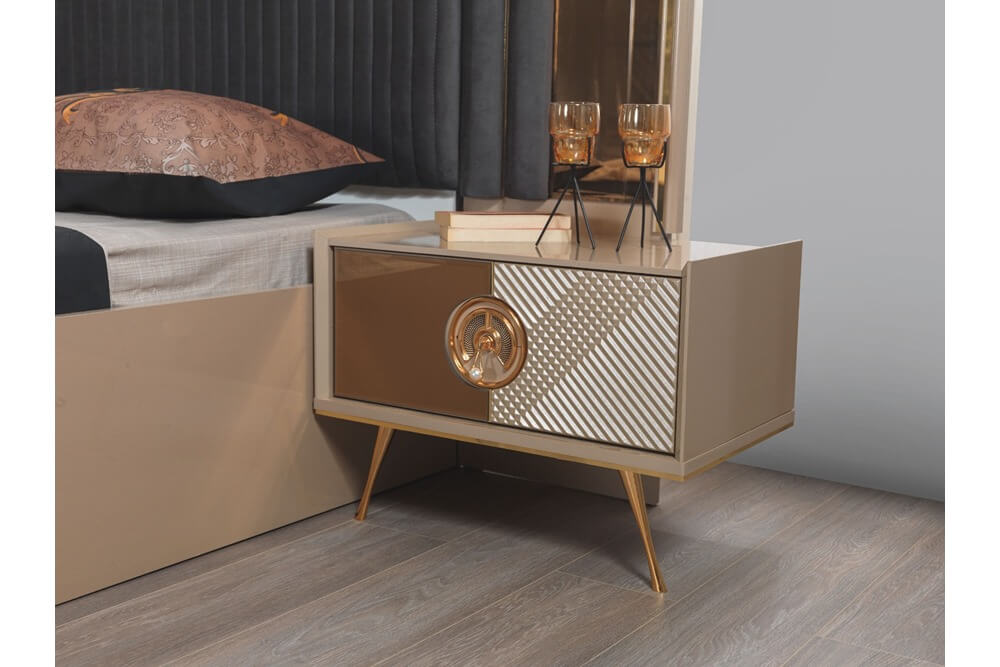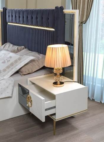 Спальня Нил представлена в нескольких вариантах. Белая спальня Нил с золотом, Кремовая спальня Нил с золотом, Белая спальня с серебром.