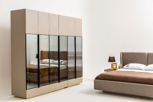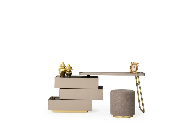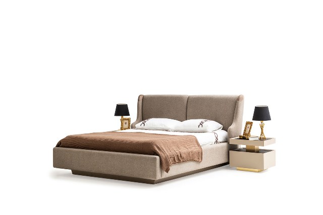 Турецкая спальня Кумсал сделана в современном стиле в цвете капучино. В комплект спальни входит мягкая двухспальная кровать, тумбочки прикроватные, дизайнерский туалетный столик, шкаф для одежды.