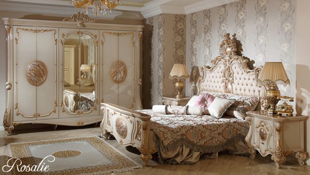 1. Кровать двуспальная. В классических интерьерах кровати привлекают особое внимание, так как отличаются массивным изголовьем и уникальными декоративными элементами. Кровать ROSE выполнена из массива, при этом изголовье обтянуто качественной тканью и украшено пуговицами. Габариты:
