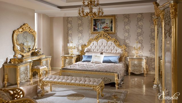 4. Шкаф 3-х дверный поможет поддерживать порядок в спальне. Дверцы шкафа украшает фигурный орнамент, а по бокам расположены элементы в стиле барокко. Размеры:
