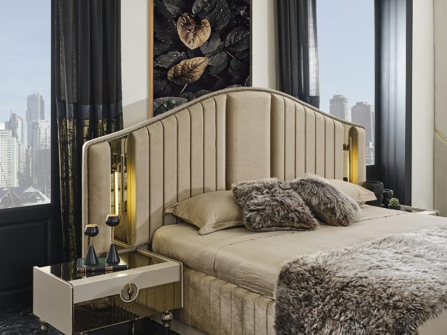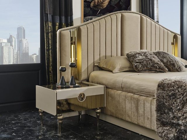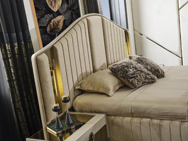 Бежеве м’яке ліжко із золотом Гера, ONS