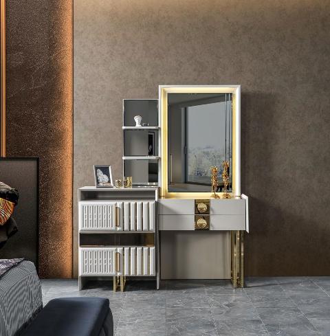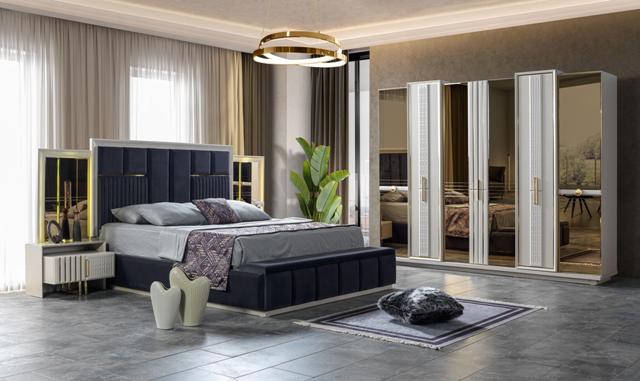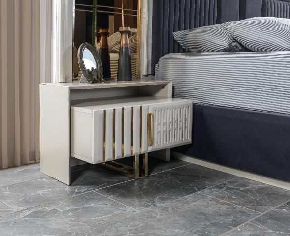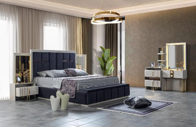 Білі меблі для спальні Версаче від турецької фабрики виробника Ви можете купити у нашому магазині меблів у Києві. Спальня зроблена із МДФ високої якості в стилі модерн. Таку спальню можна замовити в повному комплекті або купити окремими одиницями меблів – ліжко зі спальним місцем – 1600*2000 або 1800*2000, тумбочки ліжка, туалетний стіл, шафа.