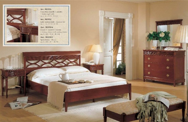 Румунські меблі для спальні Марія Сільва виконані з натурального дерева на фабриці Монте Крісто Мобілі. Великий вибір кольорової гами. Основні кольори меблів – NOCE CHIARO – колір горіх та у світлому кольорі – AVORIO CONTUMATO. Також можна замовити спальню та в індивідуальних кольорах. Колір можна уточнити у менеджера компанії.