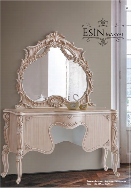 Класичний консольний столик Есін виготовлений з натурального дерева та МДФ. Можна замовити і в інших кольорах – білий, крем, горіх, золото, срібло, чорний, бронза.