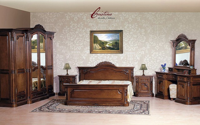 Красиві різьблені меблі для спальні Христина з масиву бука від румунської фабрики SIMEX представлена в нашому магазині меблів у Києві. Така спальня у класичному стилі з елементами бароко прикрасить інтер’єр Вашої кімнати. У комплекті спального румунського гарнітура Ви підберете комоди різних розмірів, шафи для одягу на 2, 3, 4, 5 дверей.