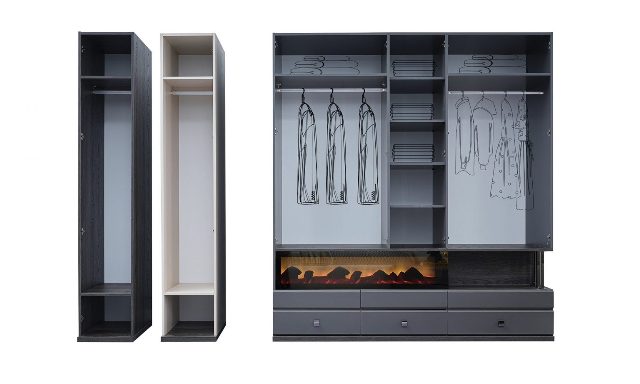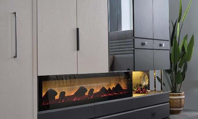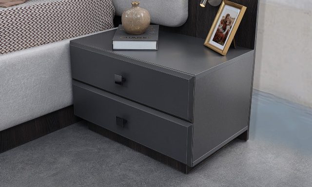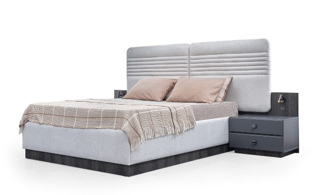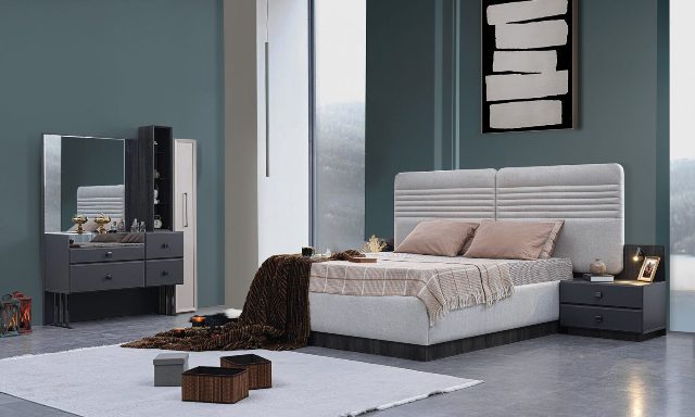 Сучасний комплект турецьких меблів для спальні Арін. Спальня представлена у сірому кольорі у сучасному стилі. М’яке ліжко може бути з підйомним механізмом. Цікавий дизайн туалетного столика поєднує в собі місце для зберігання і зручність у використанні. Шафа цікаво поєднана з електрокаміном, що надає не тільки красі в дизайні, а й забезпечує тепло в спальній кімнаті. Спальню можна замовити у повному комплекті у нашому інтернет-магазині меблів у Києві.