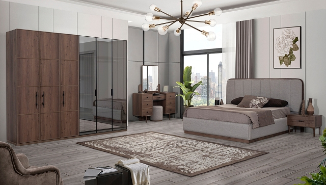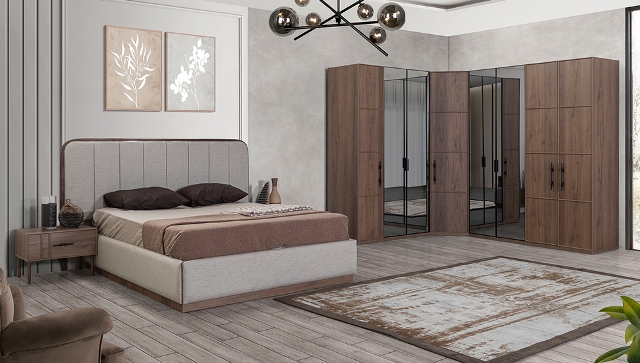 Спальню Ретро від турецької фабрики виробника можна купити у нашому магазині меблів у Києві. Спальня виготовлена з МДФ високої якості в кольорі горіх. М’яке ліжко оснащене підйомним механізмом – оббивку (колір тканини) можна вибрати за каталогом – за бажанням або купити м’яке ліжко в оригінальному кольорі як у каталозі. У комплект входить – ліжко, 2 тумбочки, туалетний стіл, шафа. Шафа може бути стандартна 6 дверей або можна замовити кутову.